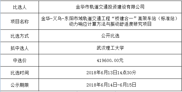 金華市金義東軌道交通有限公司運(yùn)營環(huán)境長效管理系統(tǒng)項(xiàng)目中標(biāo)候選人公示