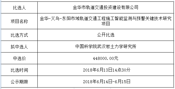 金華市金義東軌道交通有限公司運(yùn)營(yíng)環(huán)境長(zhǎng)效管理系統(tǒng)項(xiàng)目中標(biāo)候選人公示