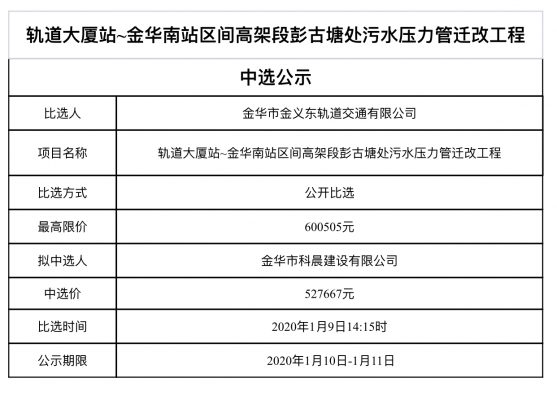 金華市金義東軌道交通有限公司運(yùn)營(yíng)環(huán)境長(zhǎng)效管理系統(tǒng)項(xiàng)目中標(biāo)候選人公示