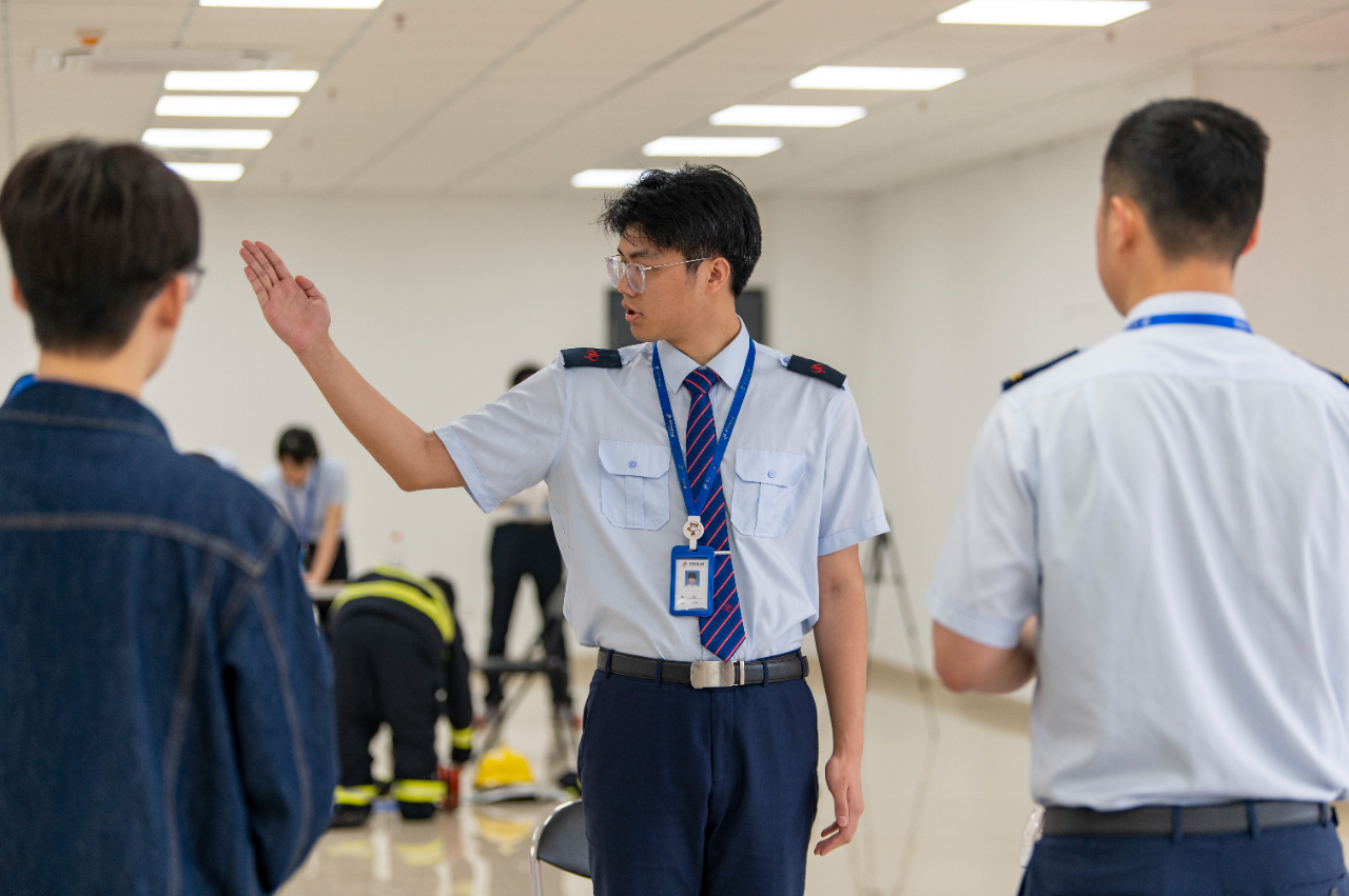 6月11日,在浙江省金華市金義東市域軌道交通工程塘雅車輛段,青年職工選手在參加軌道交通服務禮儀項目技能比武。