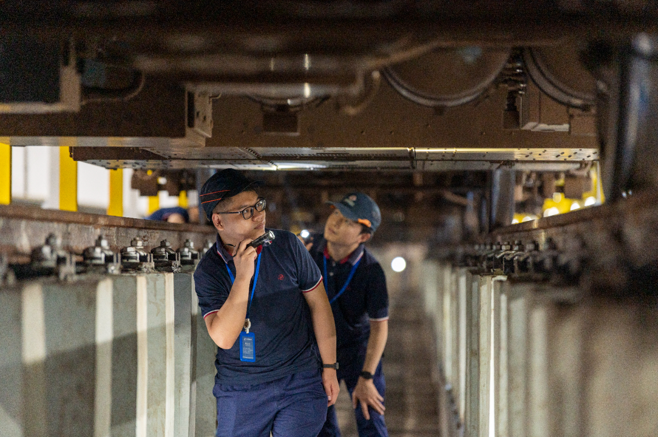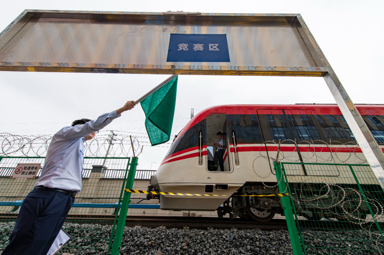 6月11日,在浙江省金華市金義東市域軌道交通工程塘雅車輛段,青年職工選手在參加軌道交通車廂安檢項目技能比武。當日,浙江省金華市舉行第三屆軌道交通青年職工技能比武大賽。從全市1000多名專業(yè)人員中選撥出來的282名青年職工選手參加應急處置、服務禮儀、手動駕駛、行車故障處置等13個項目的角逐,全面提升城市軌道交通從業(yè)人員的業(yè)務技能水平,推動技能人才隊伍高質量發(fā)展。